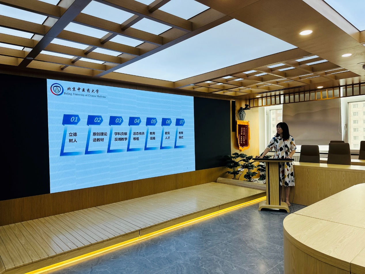 专家组先后走访了九体医学馆及王琦书院展厅,作为“科学家精神教育基地”,两馆呈现了科学、育人、文化的多重属性,是大学对外展示的窗口。在随后的座谈会上,院长助理李英帅向专家组汇报了国家中医体质与治未病研究院以及王琦书院的教育教学工作开展情况,主要从思政教育、教材建设、学科建设、教育战略、教育人才、教育模式等方面展开汇报。