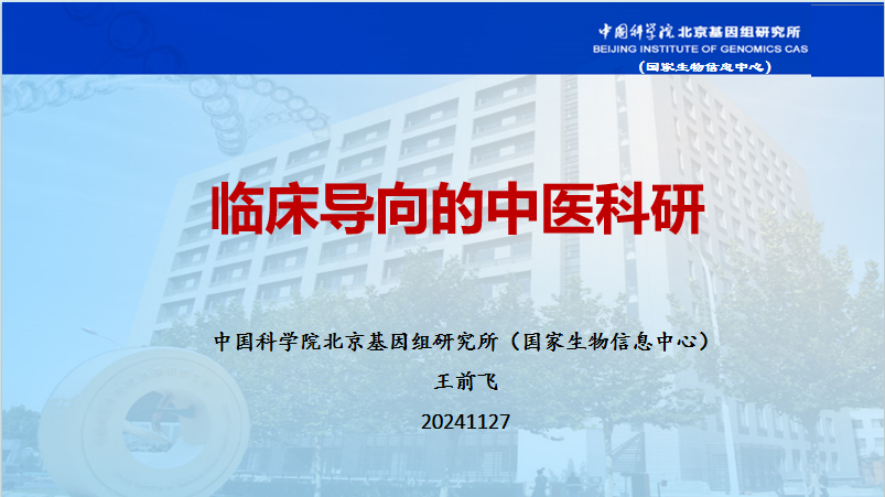 20241127日上午1040,由北京中医药大学国家中医体质与治未病研究院所依托开展2024年度教师培训项目,题目为:临床导向的中医科研。